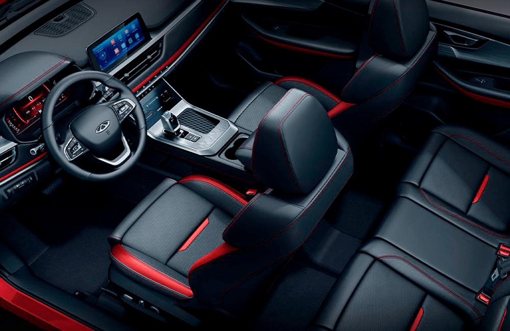 - Отделка интерьера черная с красным